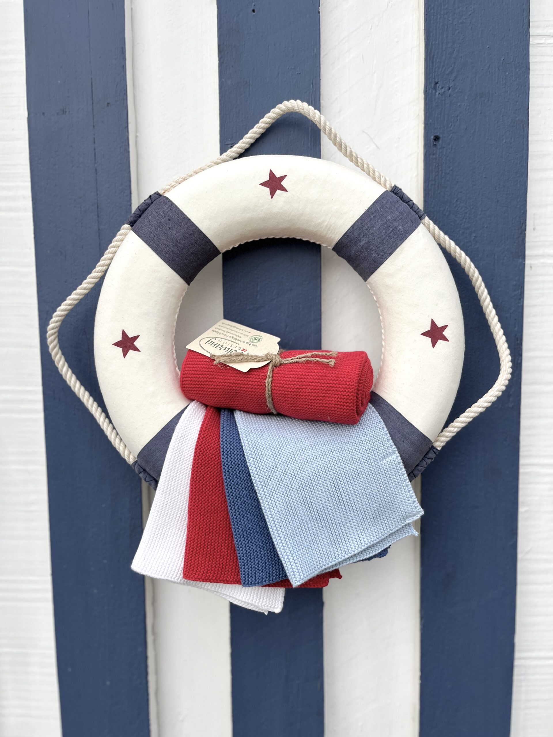 3 Stück gestrickte Wischtücher in Weiss/Blau Kombi.
