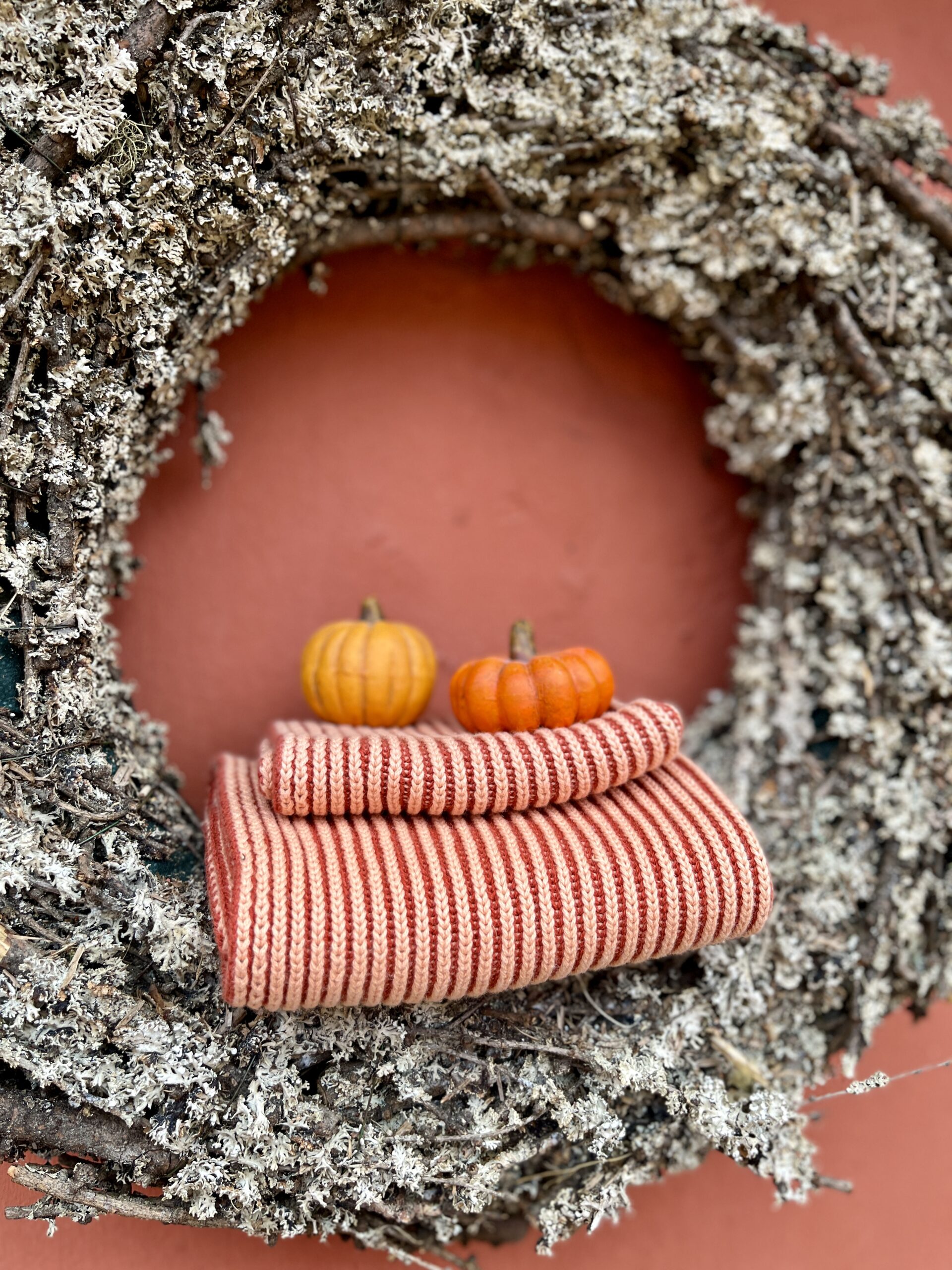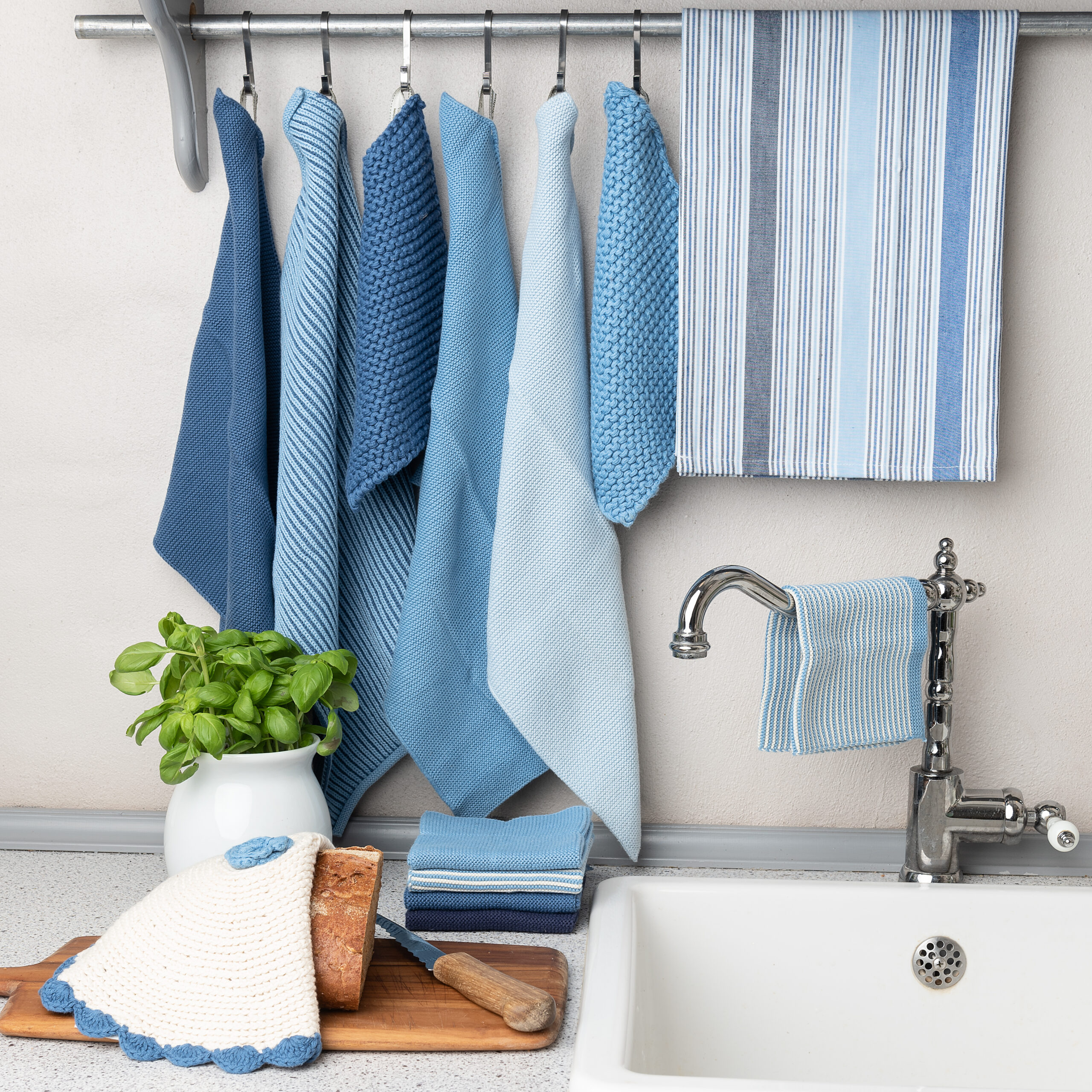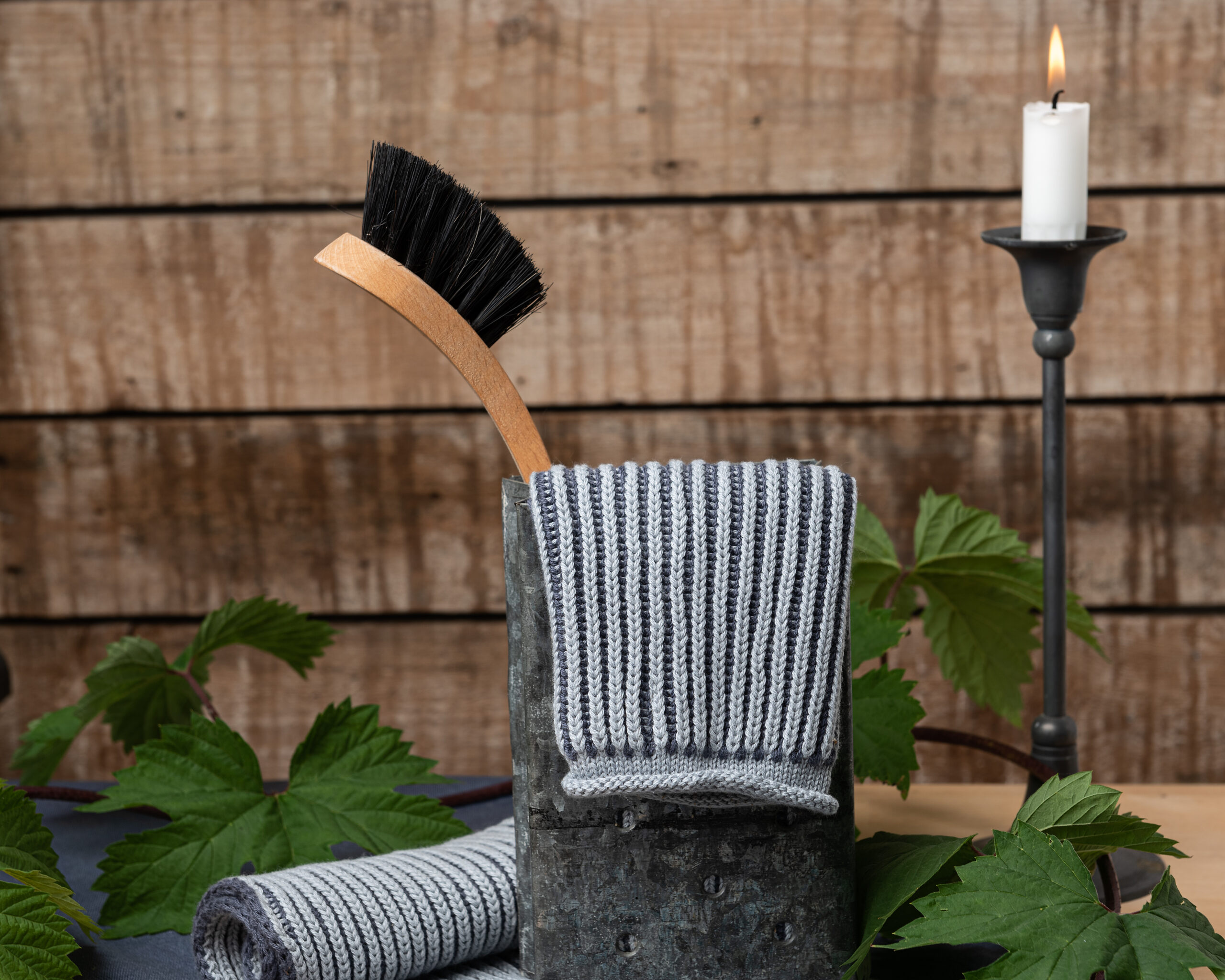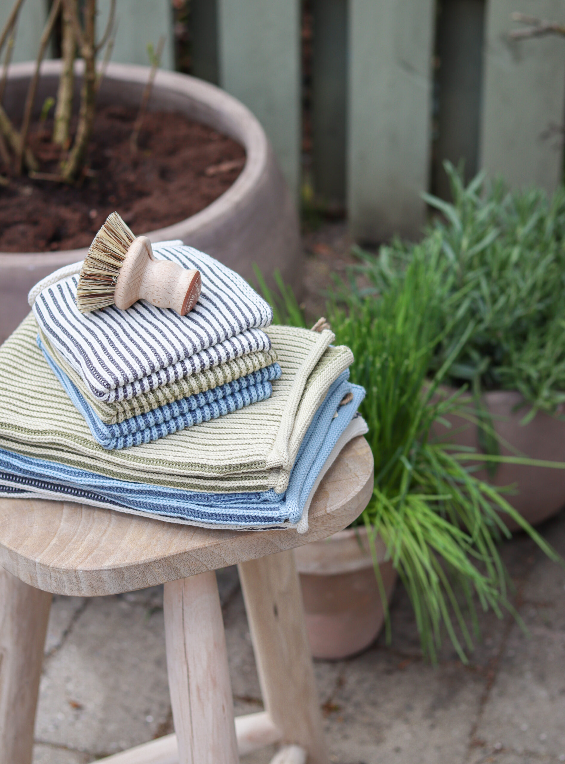 Lovely rib knitted series in two beautiful tone in tone colors consisting of a cloth (25 x 25 cm) and a towel (32 x 47 cm) made of 100% organic cotton.
