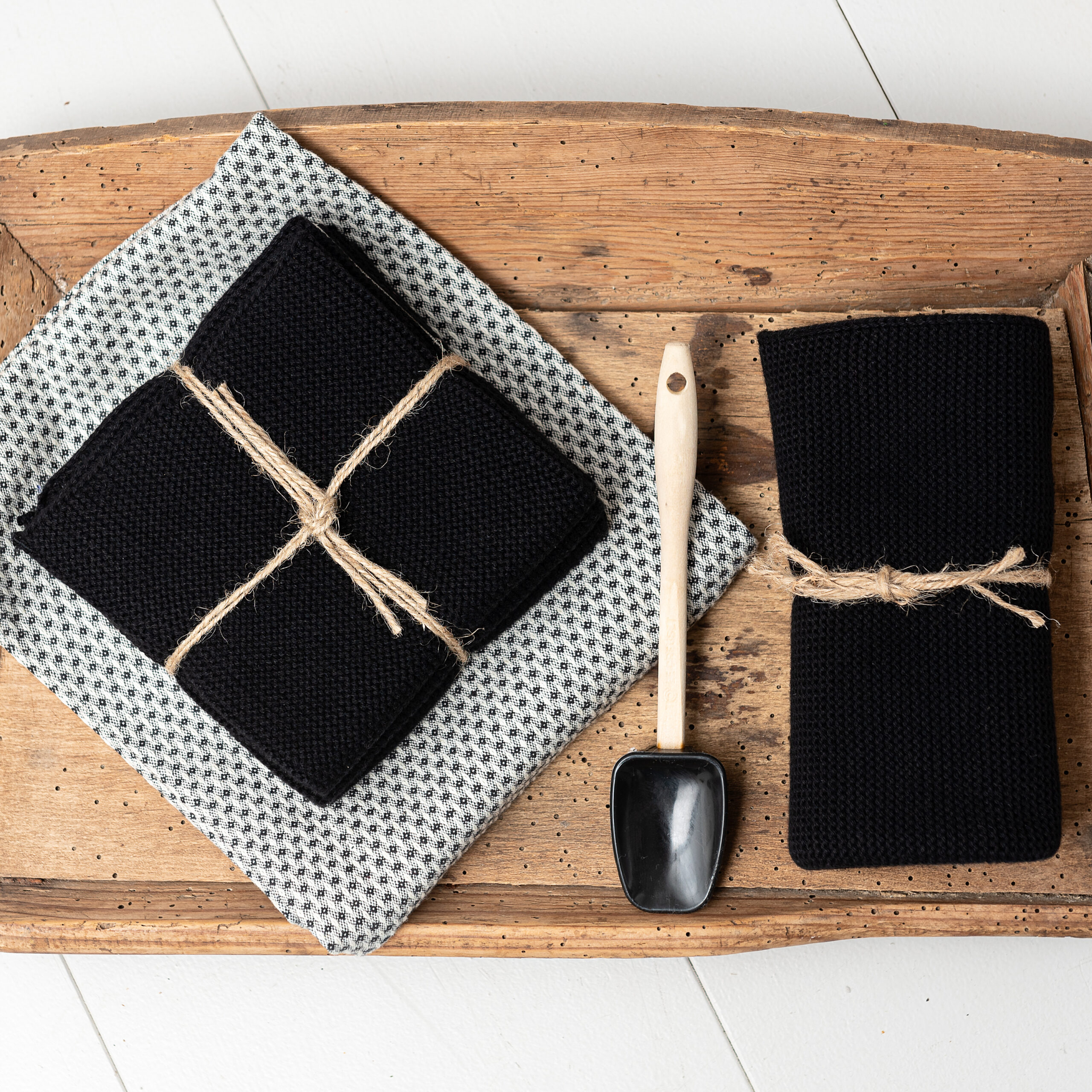 1 pcs. of knitted kitchen towel in black.