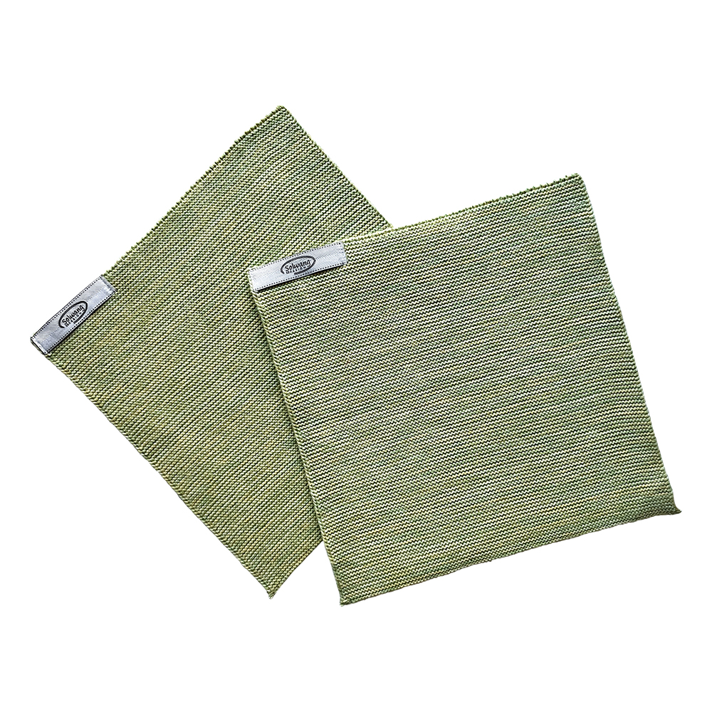 2-pak multikulørte karklude lavet i restegarn i Oeko-tex kvalitet, pakket i en lille papirspose.
