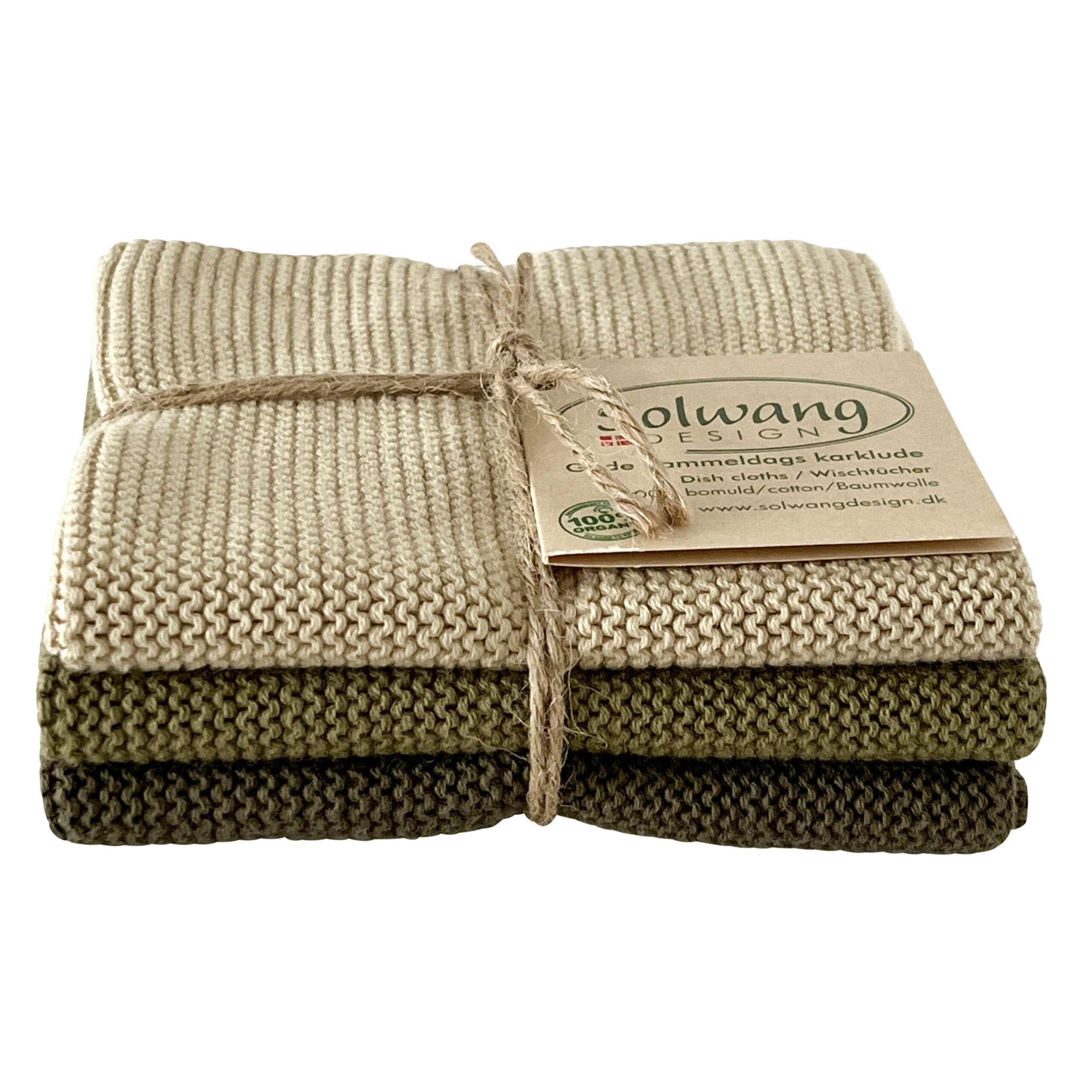2-pak multikulørte karklude lavet i restegarn i Oeko-tex kvalitet, pakket i en lille papirspose.