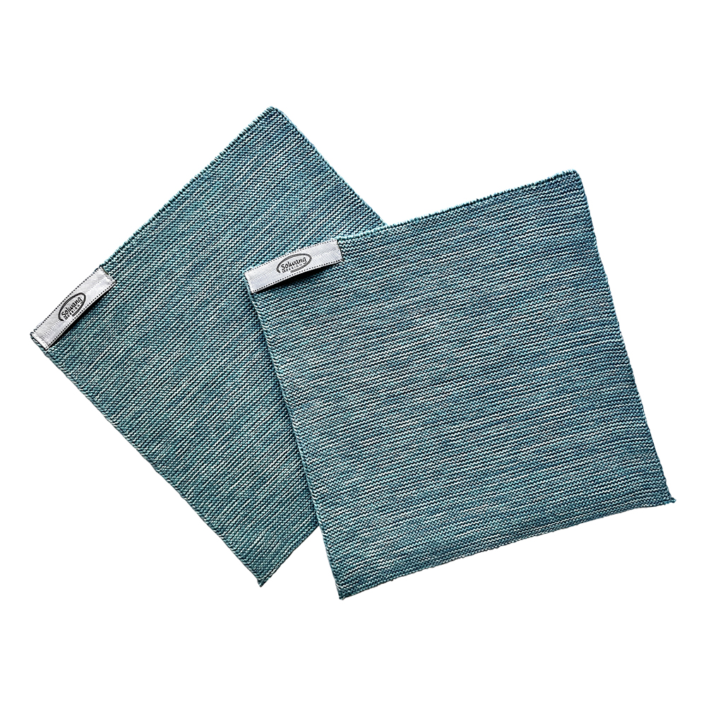2-pak multikulørte karklude lavet i restegarn i Oeko-tex kvalitet, pakket i en lille papirspose.